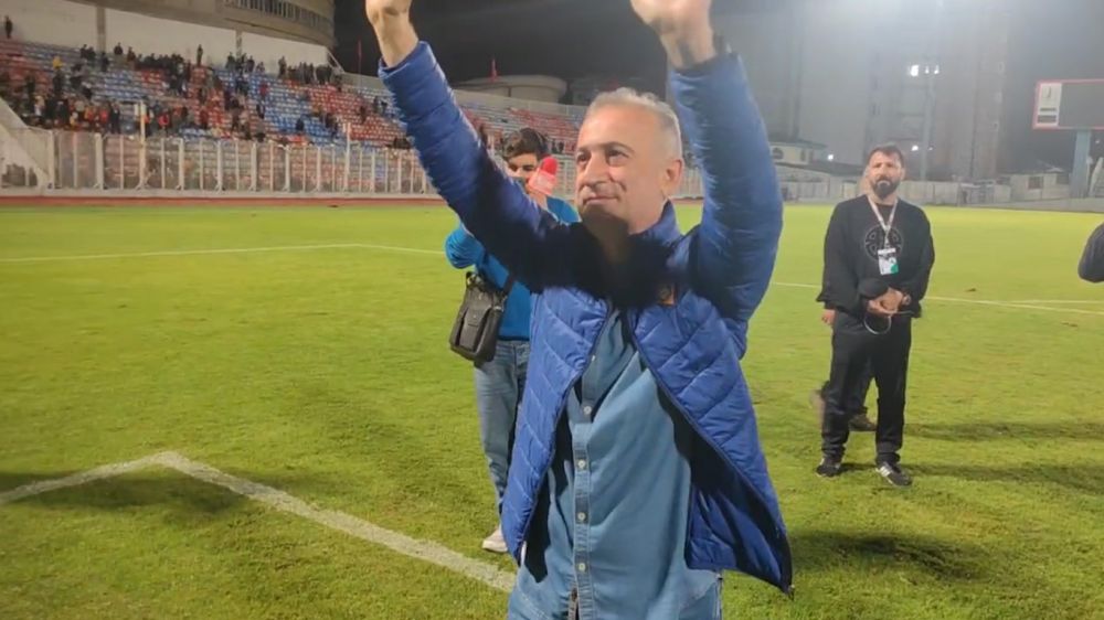 تشویق فراز کمالوند و بازیکنان نساجی توسط هواداران در پایان بازی با نیروی زمینی