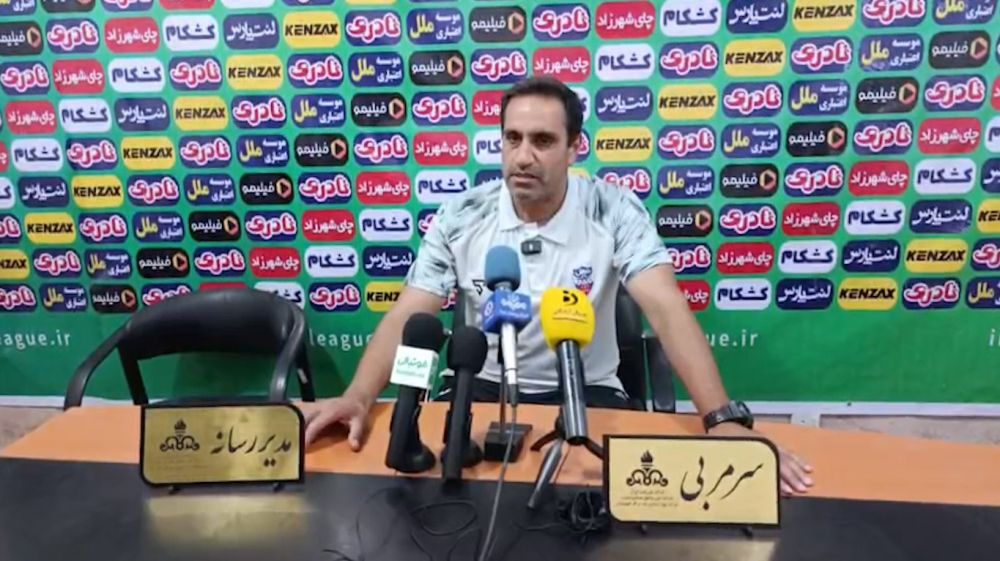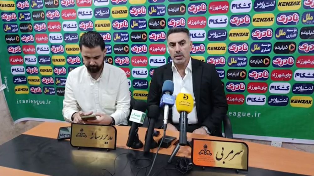 نشست خبری محمود فکری سرمربی نفت و گاز گچساران بعد از بازی با داماش گیلان در لیگ یک